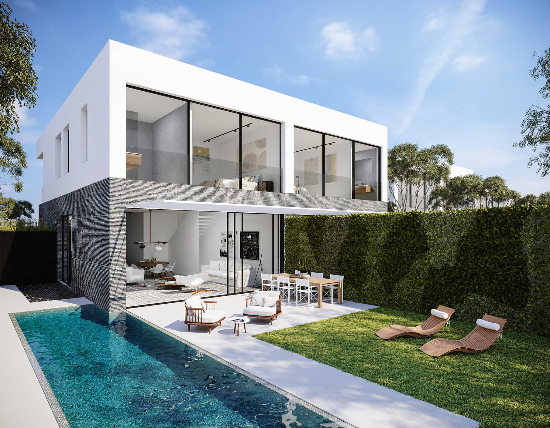 Top design by the leading architect Orly Shrem, each villa consists 3 levels of living space with an option to add a sun rooftop terrace, high end facilities including a Bulthaup Kitchen, Fujitsu VRF HVAC, smart home system, underfloor heating, elevator and private swimming pool.