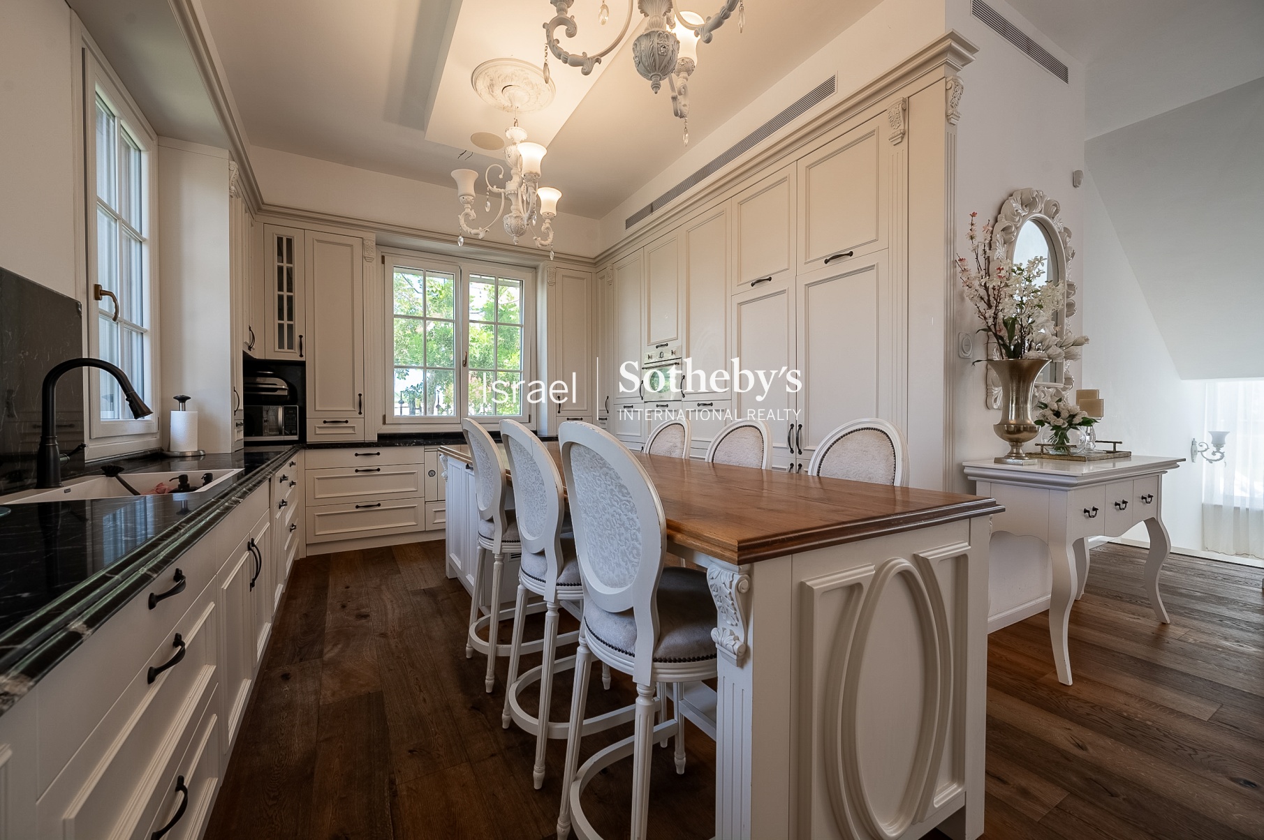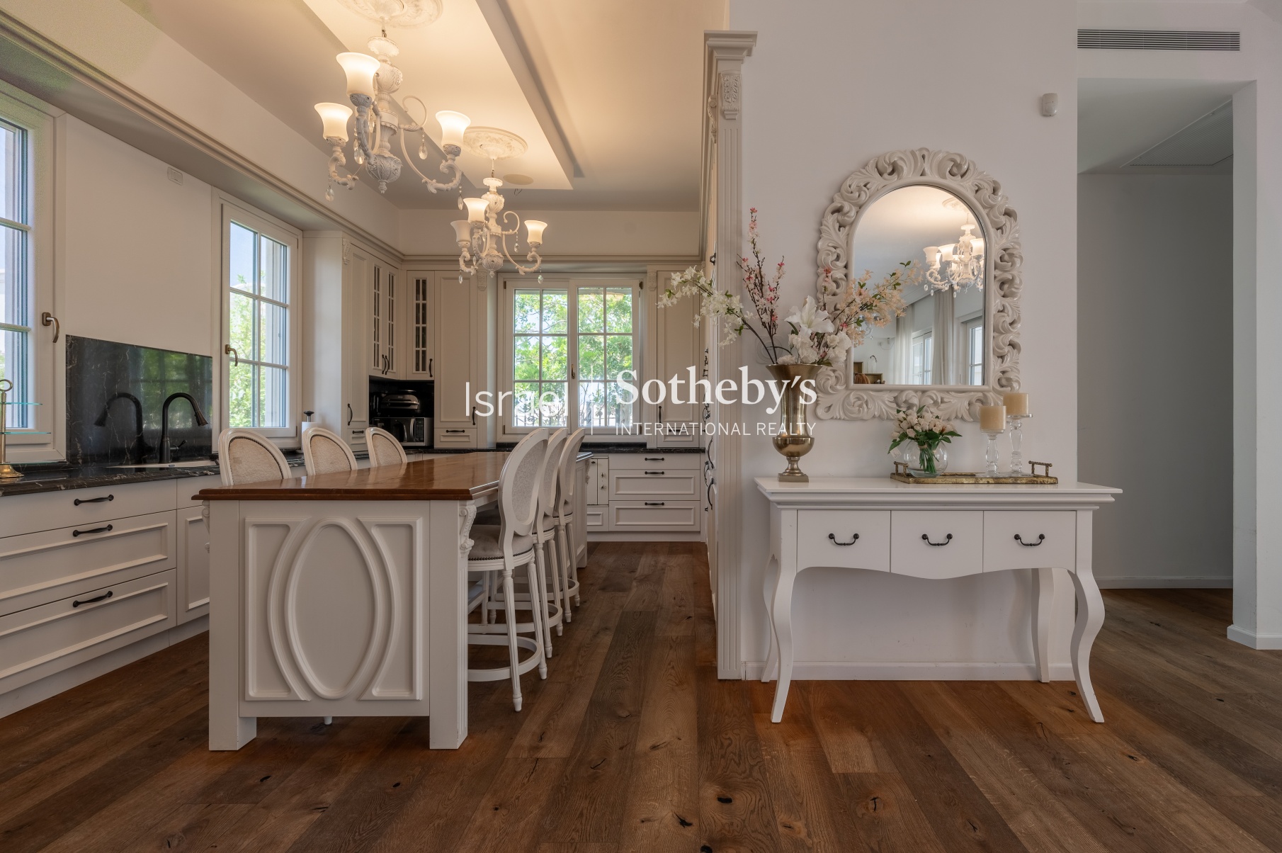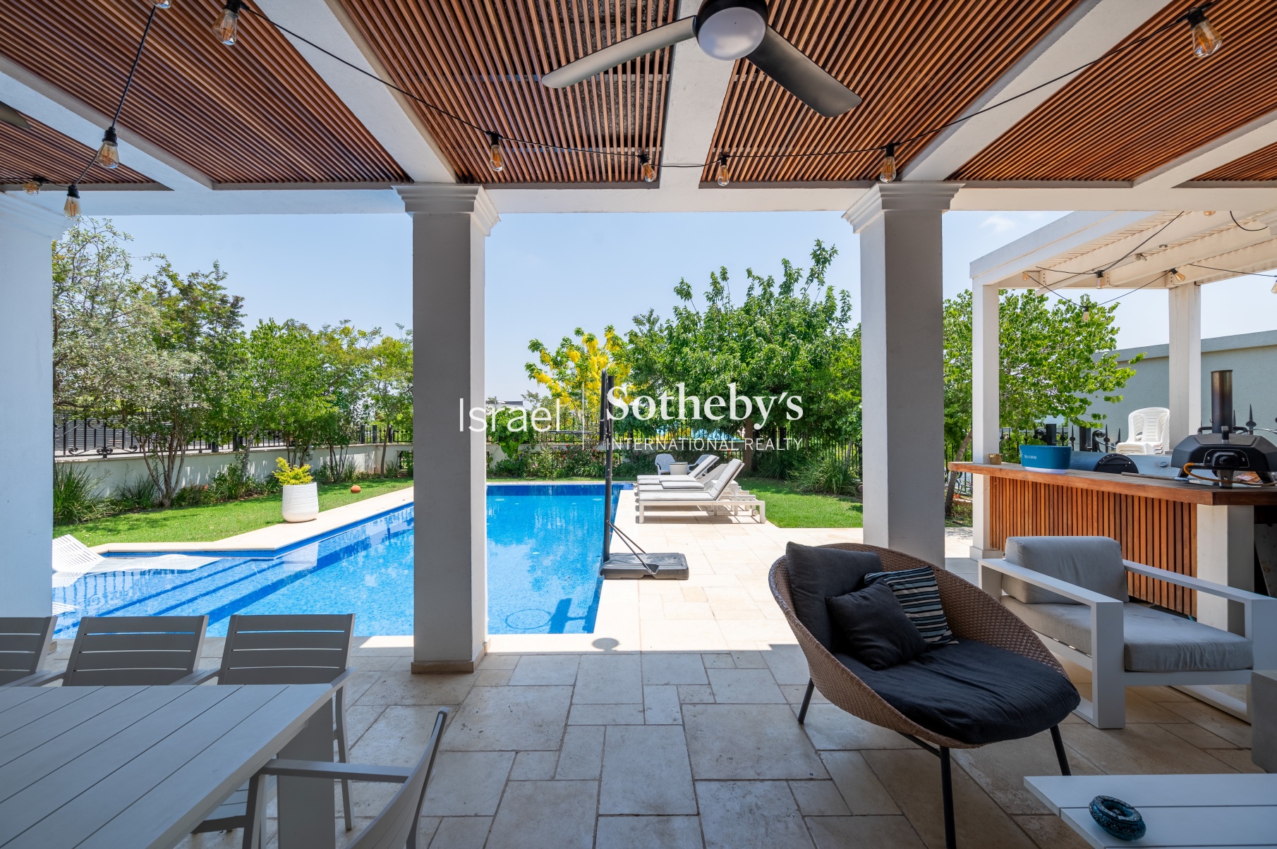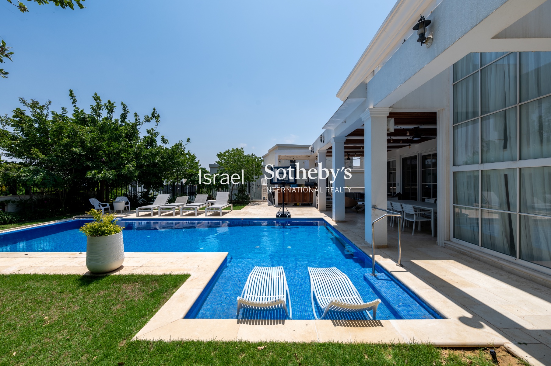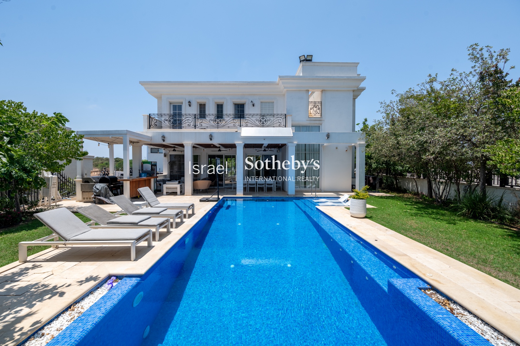 Situated in one of the newest clusters in one-and-only Caesarea this exquisite 550 m2 classic style villa combines meticulously planned floor plan and high-quality natural materials and boasts a spacious living room, a formal dining room, a designer kitchen, an office, two en-suite bedrooms and a grand master bedroom plus three additional bedrooms in a fully finished basement. The grand lawn allows optimal indoor-outdoor living, ideal for entertaining.