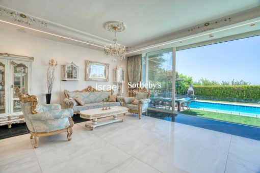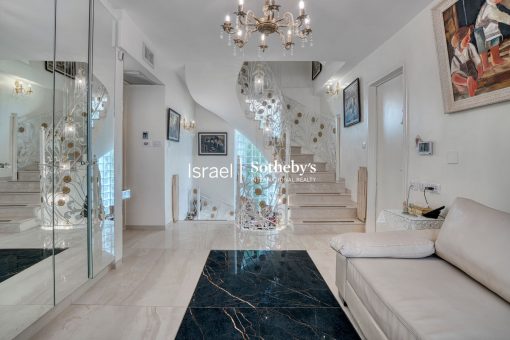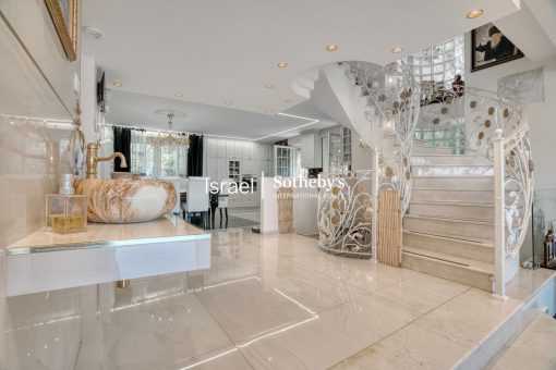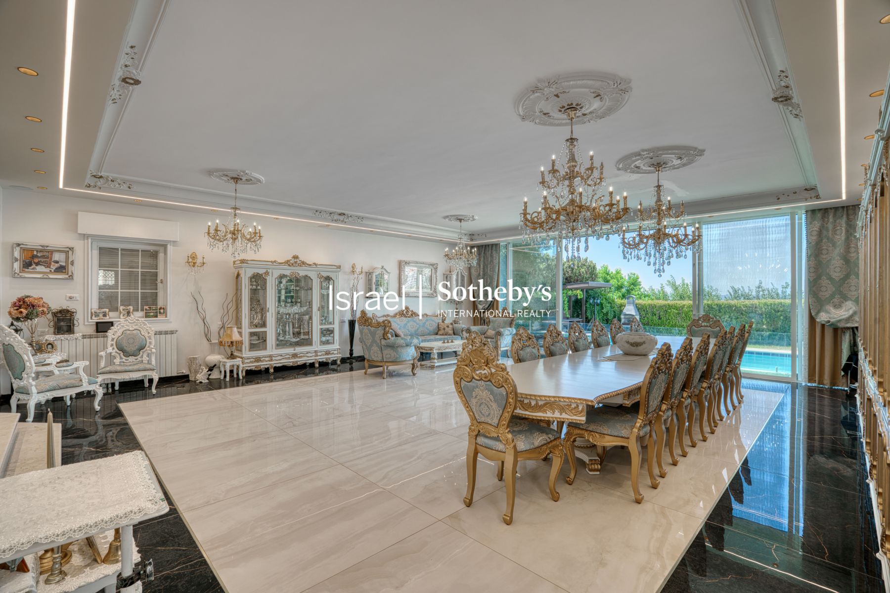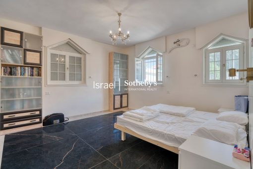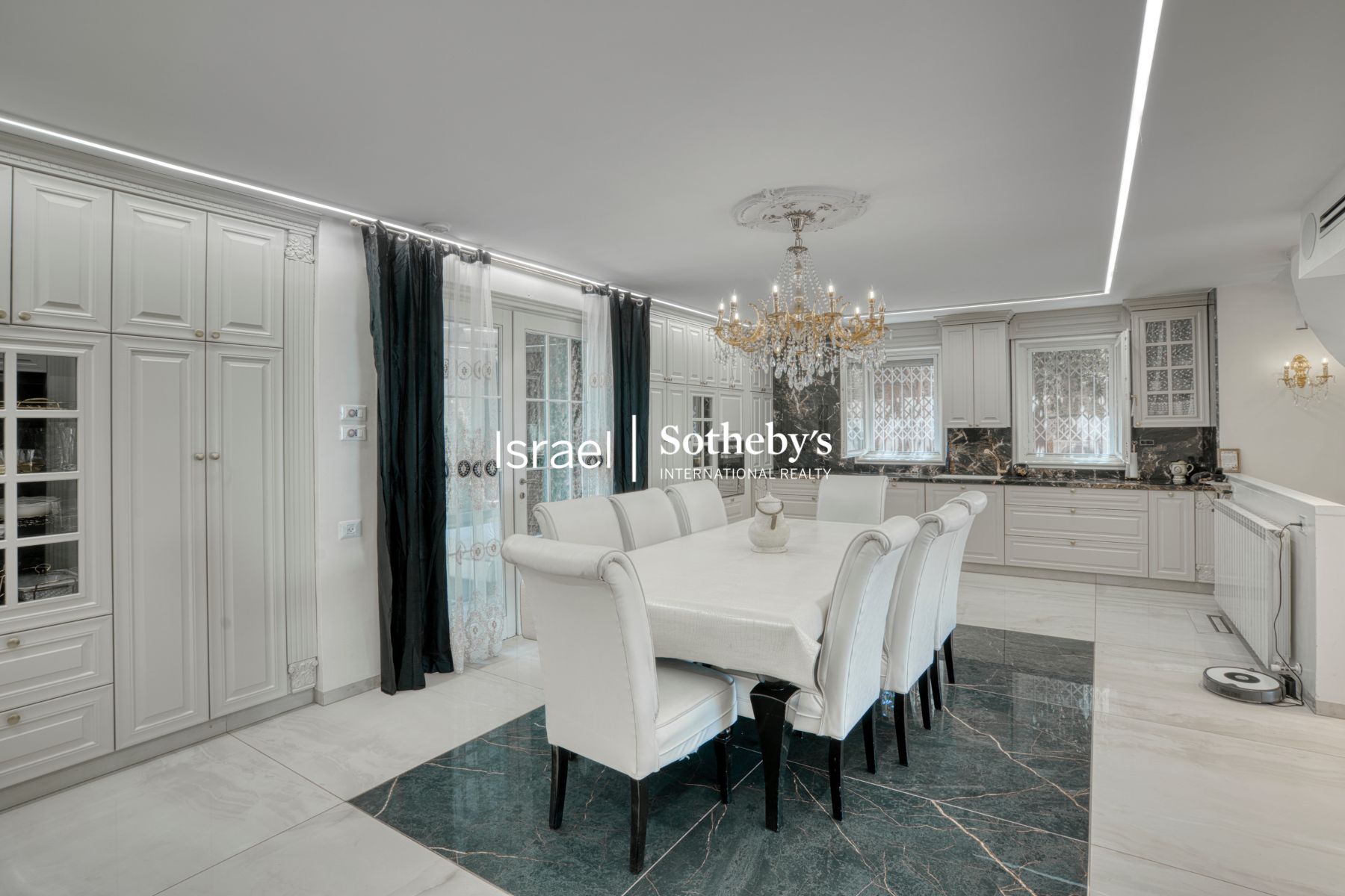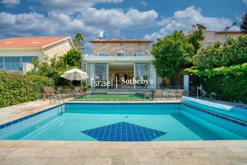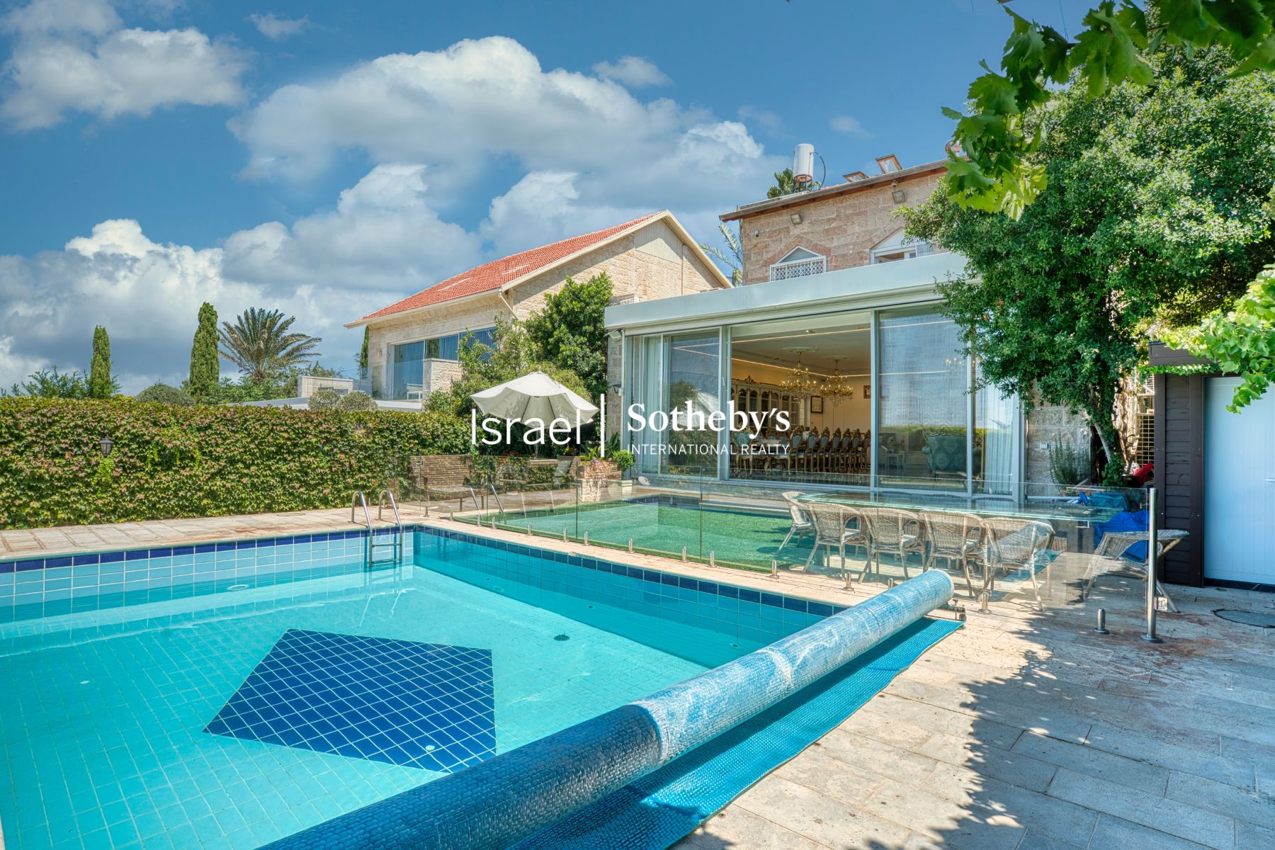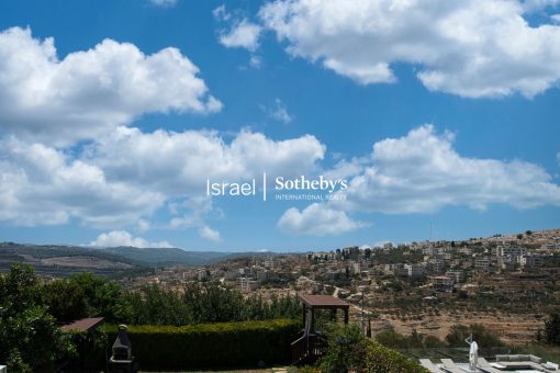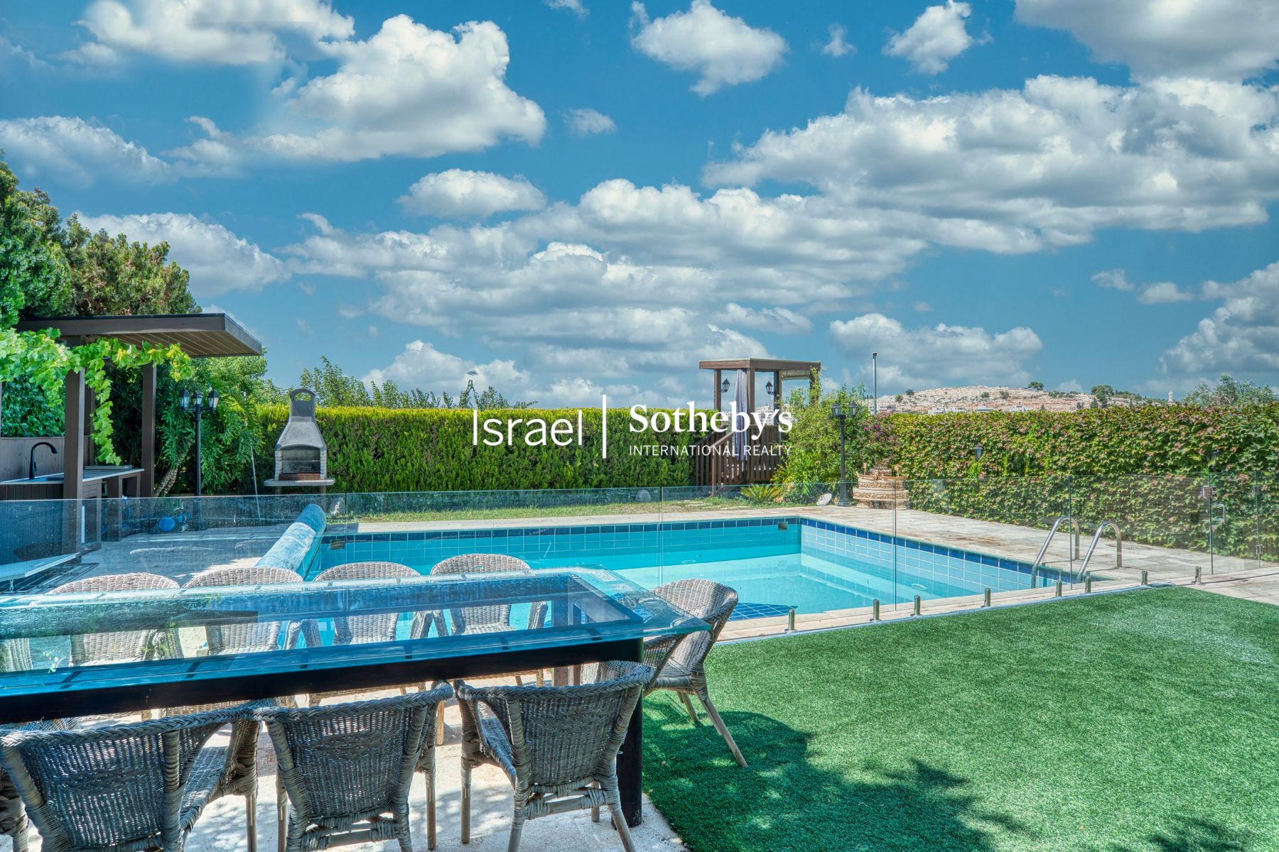 This elegant 4-Story villa is situated in the tranquil and pastoral Ramot neighborhood, also known as Ramot Alon, in the northwest of Jerusalem. The property boasts a private swimming pool and has been renovated to a high standard, ensuring it is well-maintained.