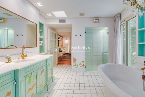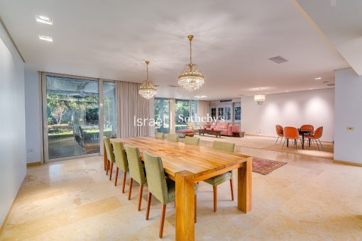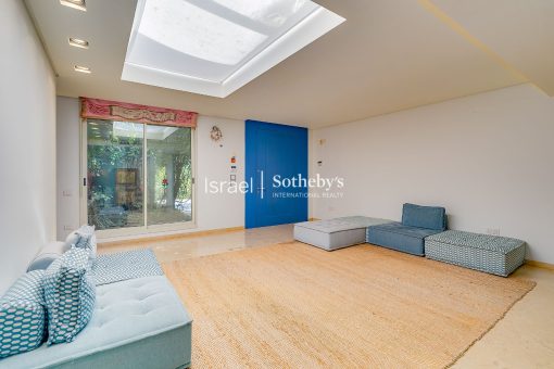 This luxurious villa in Savyon is an exceptional property designed for ultimate comfort and privacy. Located in one of central Israel’s most prestigious towns, the villa sits on a tranquil street and boasts a sprawling plot of approximately 5 dunams. The single-level home, complemented by a basement floor, features abundant natural light, and nine spacious master bedrooms, three of which are situated in the basement.