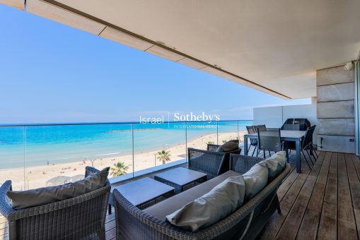 Located in one of Tel Aviv’s most coveted beachfront addresses, this ultra-luxurious apartment occupies an entire floor within a prestigious boutique residential tower—offering an unparalleled blend of privacy, comfort, and refined coastal living.
