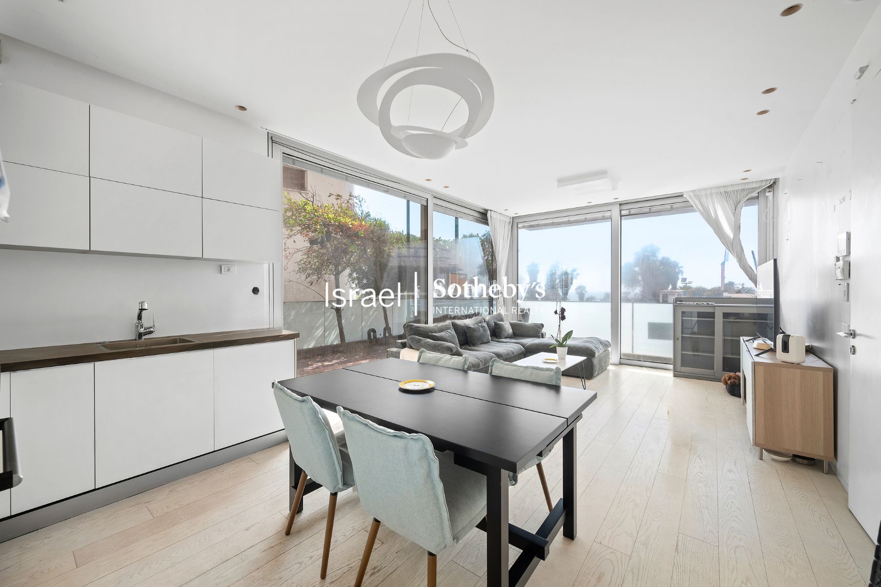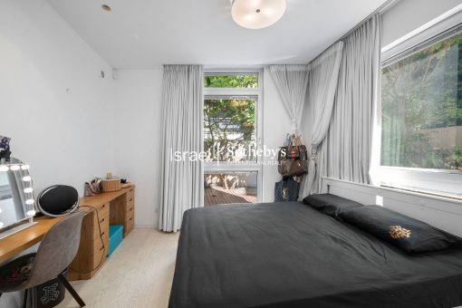 This exquisite sea view garden apartment is located within a luxury boutique building on Hayarkon Street, just a few meters from the beautiful beaches of Bugarshov and Frishman, as well as the renowned Tel Aviv Promenade. Boasting an interior space of approximately 80 square meters, along with a generous 100 square meter yard, the apartment features a light-filled living room with stunning sea views, an open-plan kitchen complete with modern appliances, two bedrooms (including a safe-room – mamad), a full bathroom, a powder room, a 9 square meter storage room, and private parking.