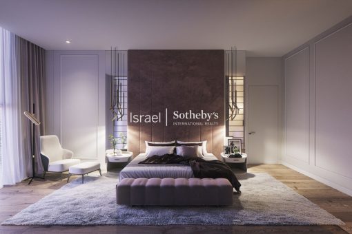 The residence comprises four rooms, including a spacious master bedroom and a Mamad (an indoor safe-room). Attention to detail is evident throughout, with advanced eco-friendly construction standards, high ceilings, curtain walls, premium kitchens from leading international brands, stylish front and interior doors, a smart home system, and an advanced air-conditioning system.