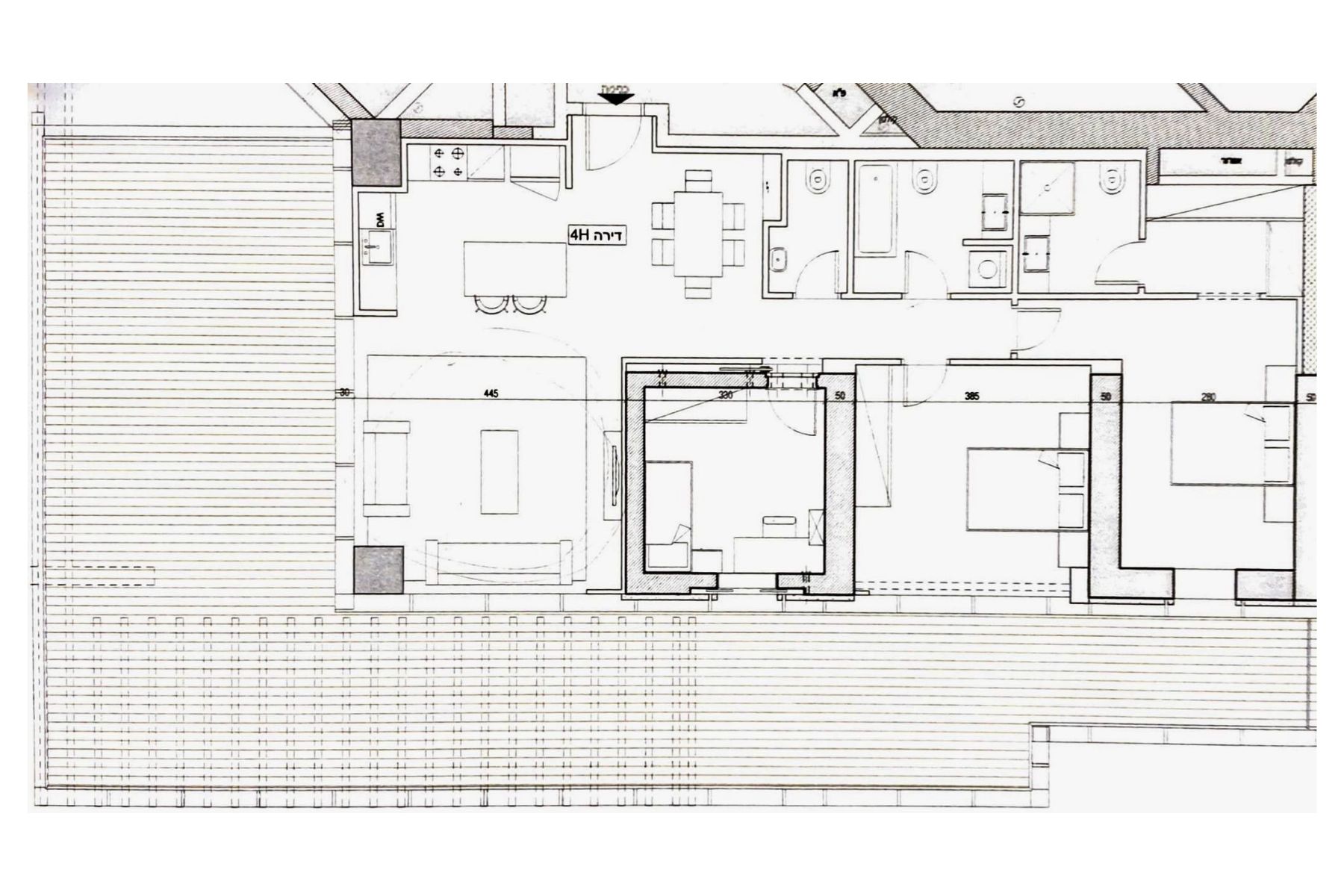 Spanning approximately 127m2 of interior space, the apartment is thoughtfully designed on a single level, ensuring both comfort and elegance. A standout feature is the expansive open-air terrace of approximately 102m2, the design caters to both aesthetic and practical needs, including the option to construct a Kosher Sukkah in accordance with Halacha.
