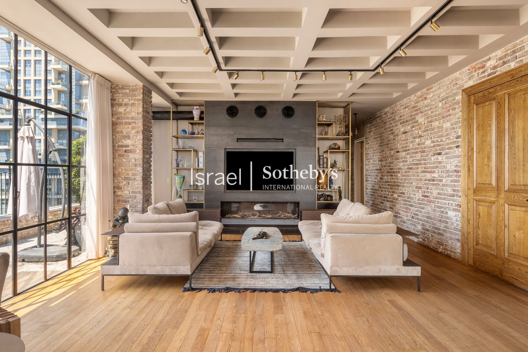 This exceptional penthouse-duplex in the prestigious Yehuda Maccabi neighborhood of Tel Aviv offers an unparalleled living experience. Nestled on a tranquil street near the iconic Akirov Towers, this property boasts a total living space of 170 m2 across two levels. The apartment features a spacious open-plan living area complete with a cozy fireplace, a sleek modern kitchen, and three elegant primary bedrooms.