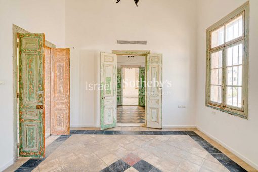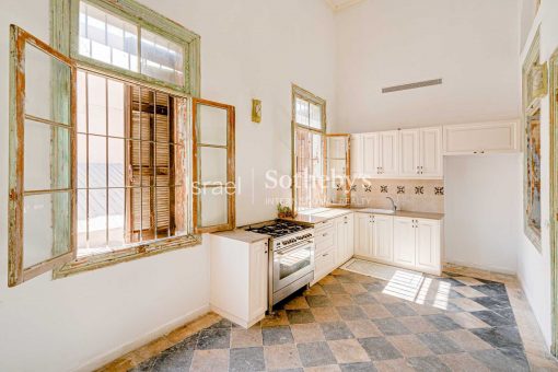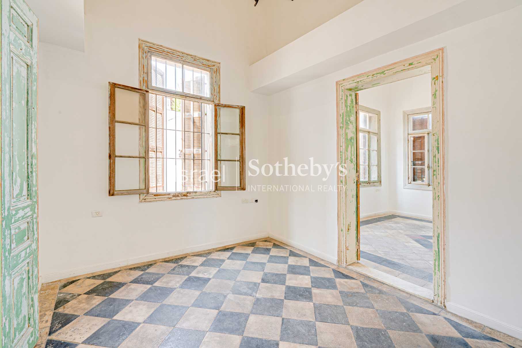 Situated on the top second floor of a historic building on the main street in Jaffa, it offers close proximity to key attractions such as the renowned Flea Market, Jaffa Port, and international schools. Spanning over 200 m2 with an additional 6 m2 sea view terrace, this extraordinary property boasts 5-meter high ceilings, original doors and window frames, oriental style flooring, and an impeccably preserved wall fresco and flooring.