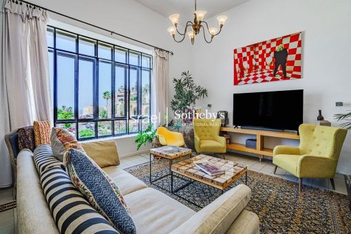 This exquisite and serene apartment, located just 100 meters from the sea on Louis Pasteur Street in Old Jaffa, offers an exceptional opportunity to reside in one of the area’s most desirable locations. Situated on the first floor of a beautifully renovated historic building, the property seamlessly blends authentic architectural charm with modern upgrades. Spanning 250 square meters, the residence features a spacious living room, five bedrooms, and an upgraded kitchen equipped with a stylish sitting island and an adjoining dining area, ideal for hosting gatherings. With soaring 6-meter-high ceilings, a private 250-square-meter rooftop, and a charming balcony that provides breathtaking sea views, this home represents the pinnacle of luxury living.