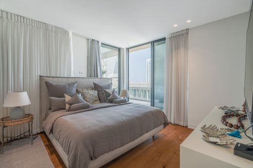 The penthouse is located on the 6th floor, offering panoramic sea views of the Mediterranean Sea. The apartment features an open-plan American-style floor plan with a spacious living room, accompanied by a designer Italian kitchen with natural black granite surfaces and Miele electrical appliances: double fridge, built-in oven, microwave, and Laundry. The apartment also includes a large master unit with a generous shower room. In addition, there are 3 separate bedrooms.