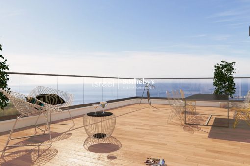 The penthouse itself spans approximately 170 square meters and features a spacious 60-square-meter balcony overlooking the sea. Its smart design encompasses 6 rooms, including 5 bedrooms, two full bathrooms, a powder-room, a separate service room, two parking spaces, and a storage room.