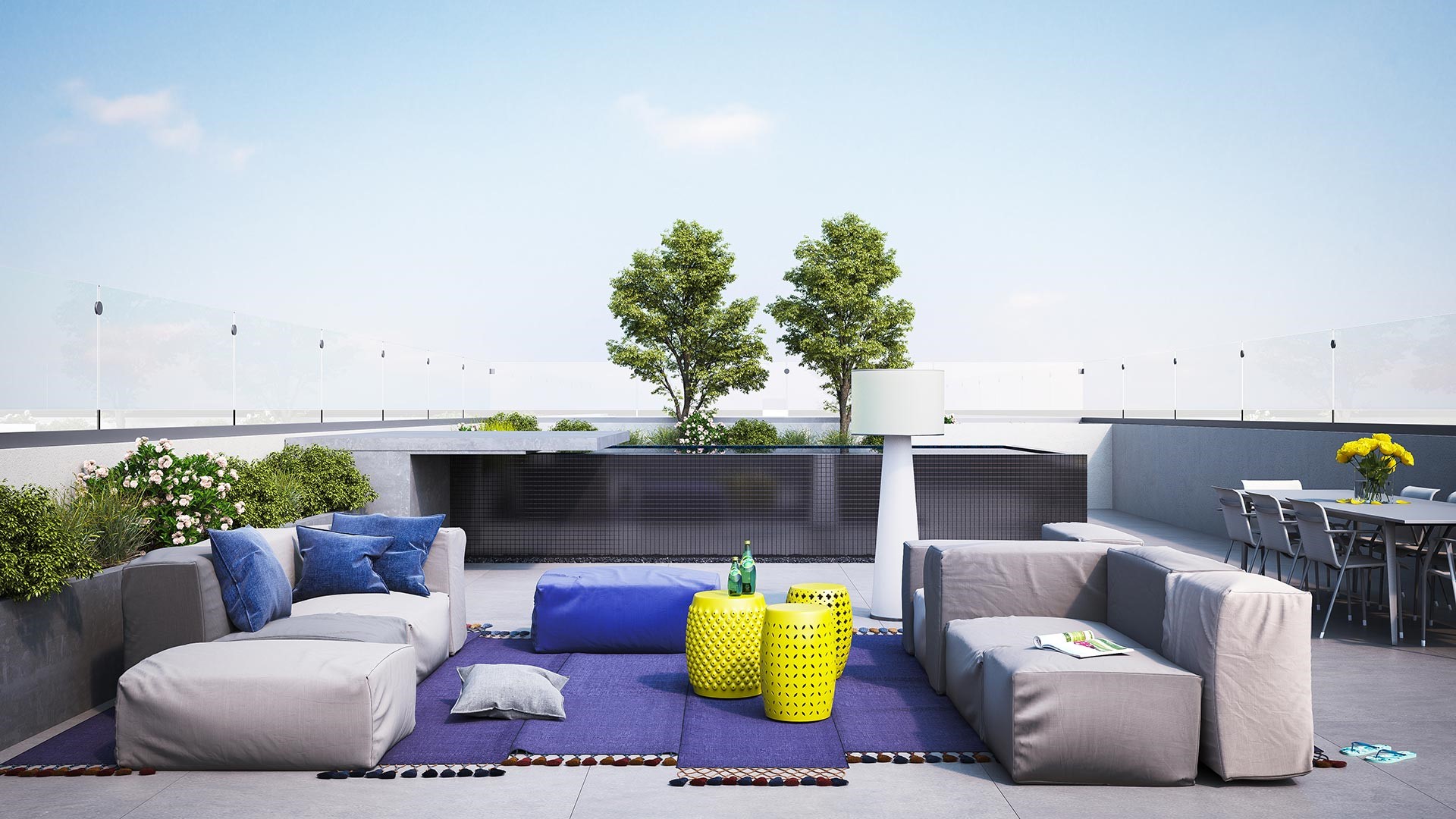 The penthouse is the only one on the floor, with 4 air directions, covers approx. 188 sqm, with an additional three balconies of approx. 100 sqm in total and an approx. 100 sqm rooftop, overlooking the city.