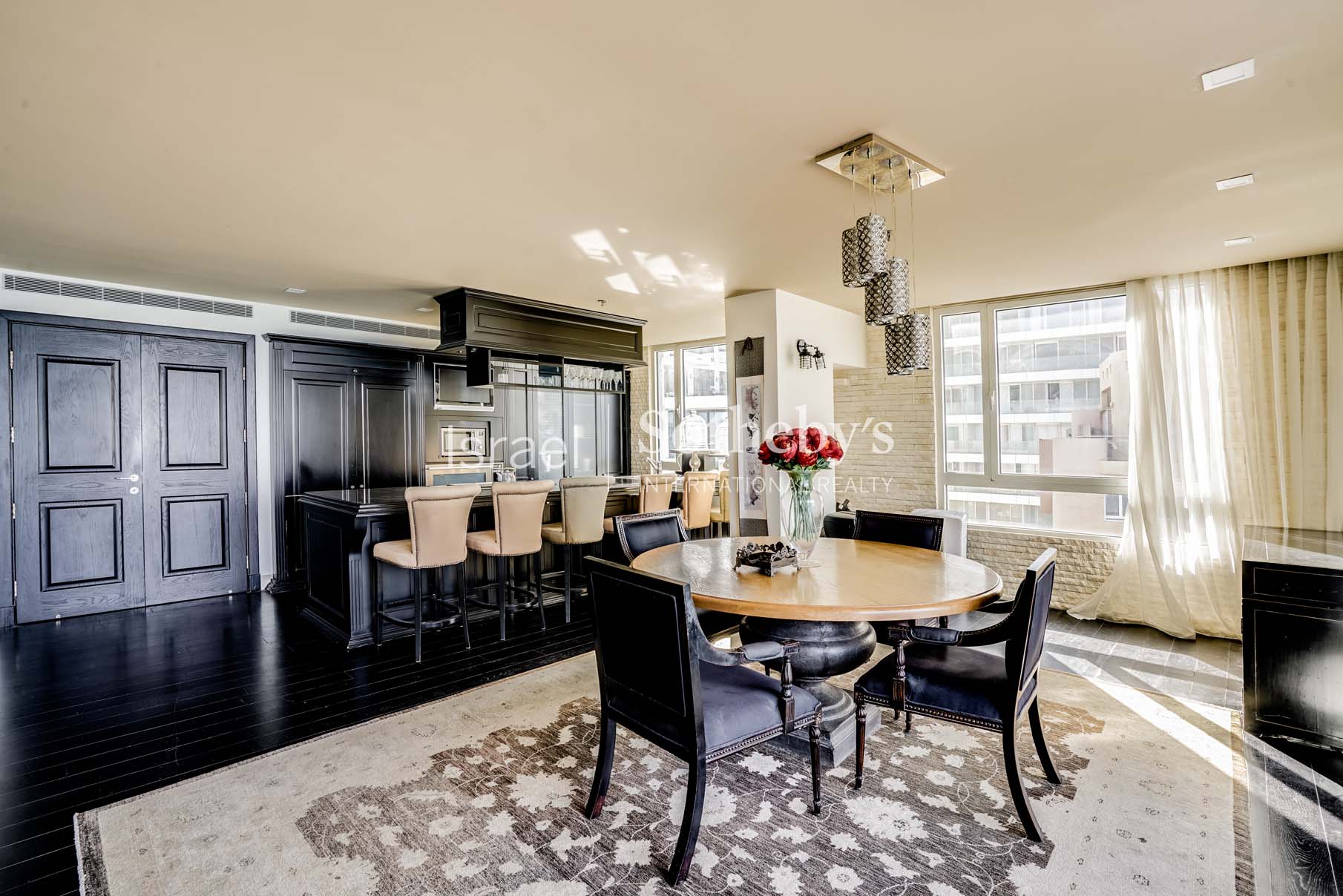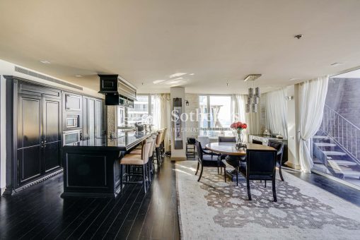 The penthouse extends over 196m2 living space on one level, offers a unique English-style interior design, full of light living room with breathtaking panoramic sea view and an open plan designer kitchen with a beautiful central kitchen bar. The cherry on top is the exquisite 96m2 rooftop terrace where you can spend quality time with family and friends while gazing at the romantic sunset over the Mediterranean Sea.
