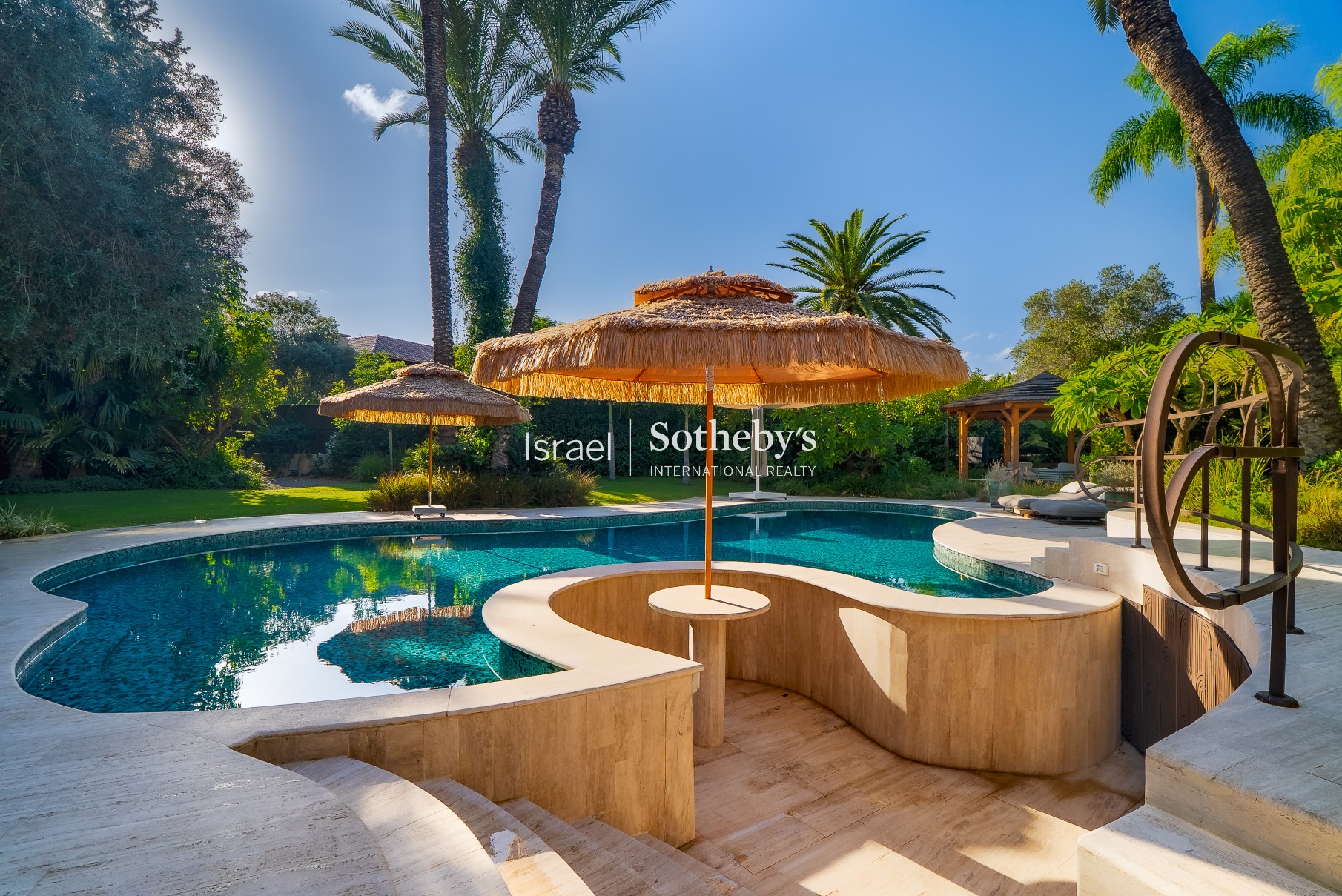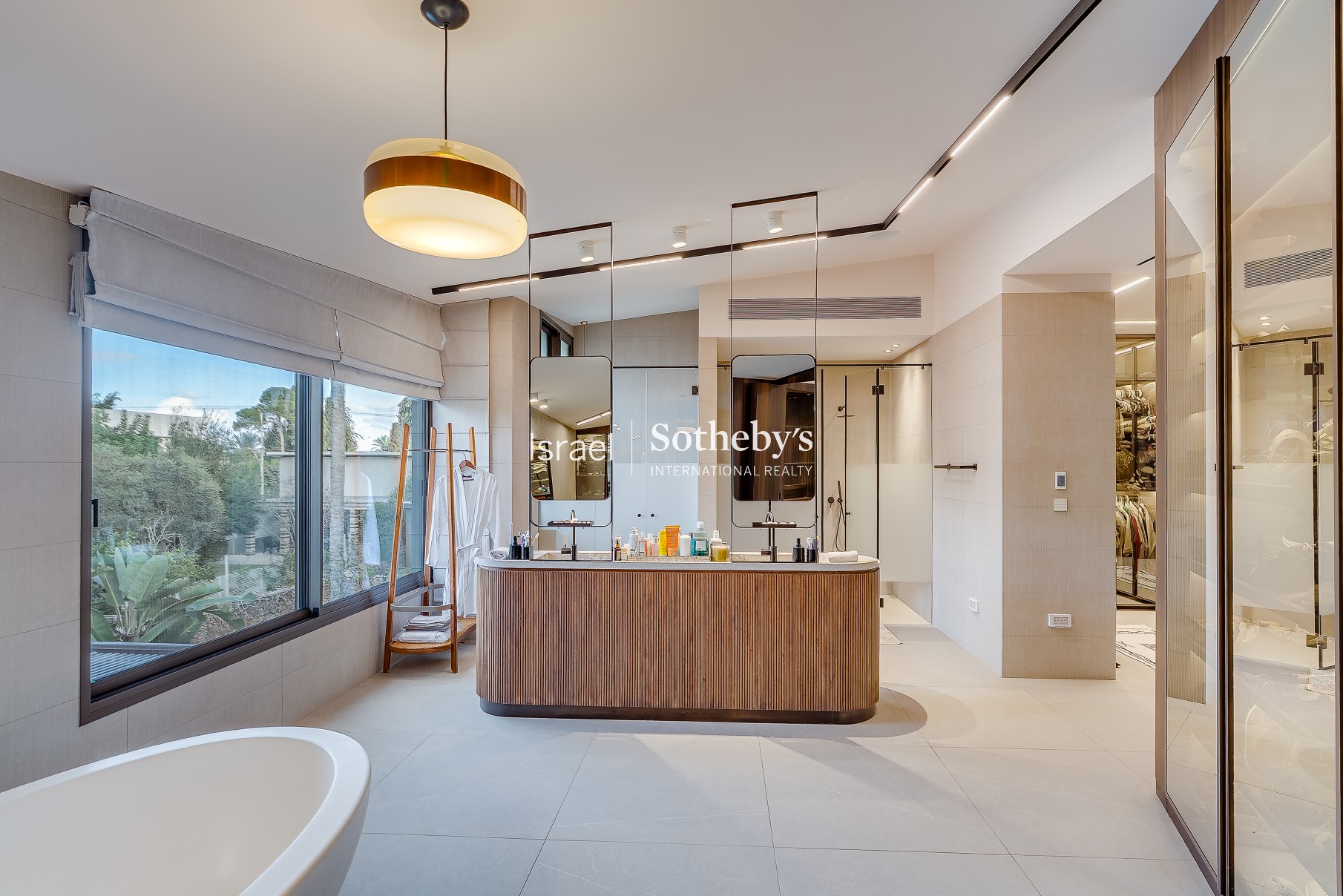 Step into a world of luxury with this stunning privately designed villa crafted by the acclaimed Israeli architect, Michael Azoulay. Nestled in the prestigious Kfar Shmaryahu, this magnificent residence is set on a generous 2,484 m² lot, offering a remarkable 780 m² of living space spread across three elegantly designed levels.