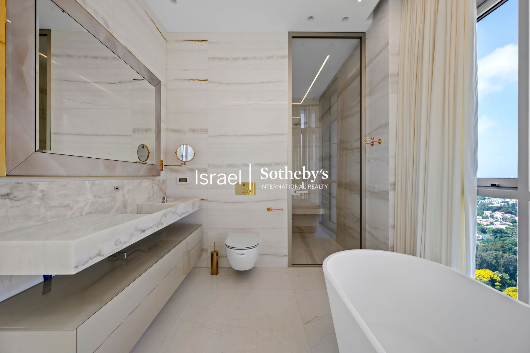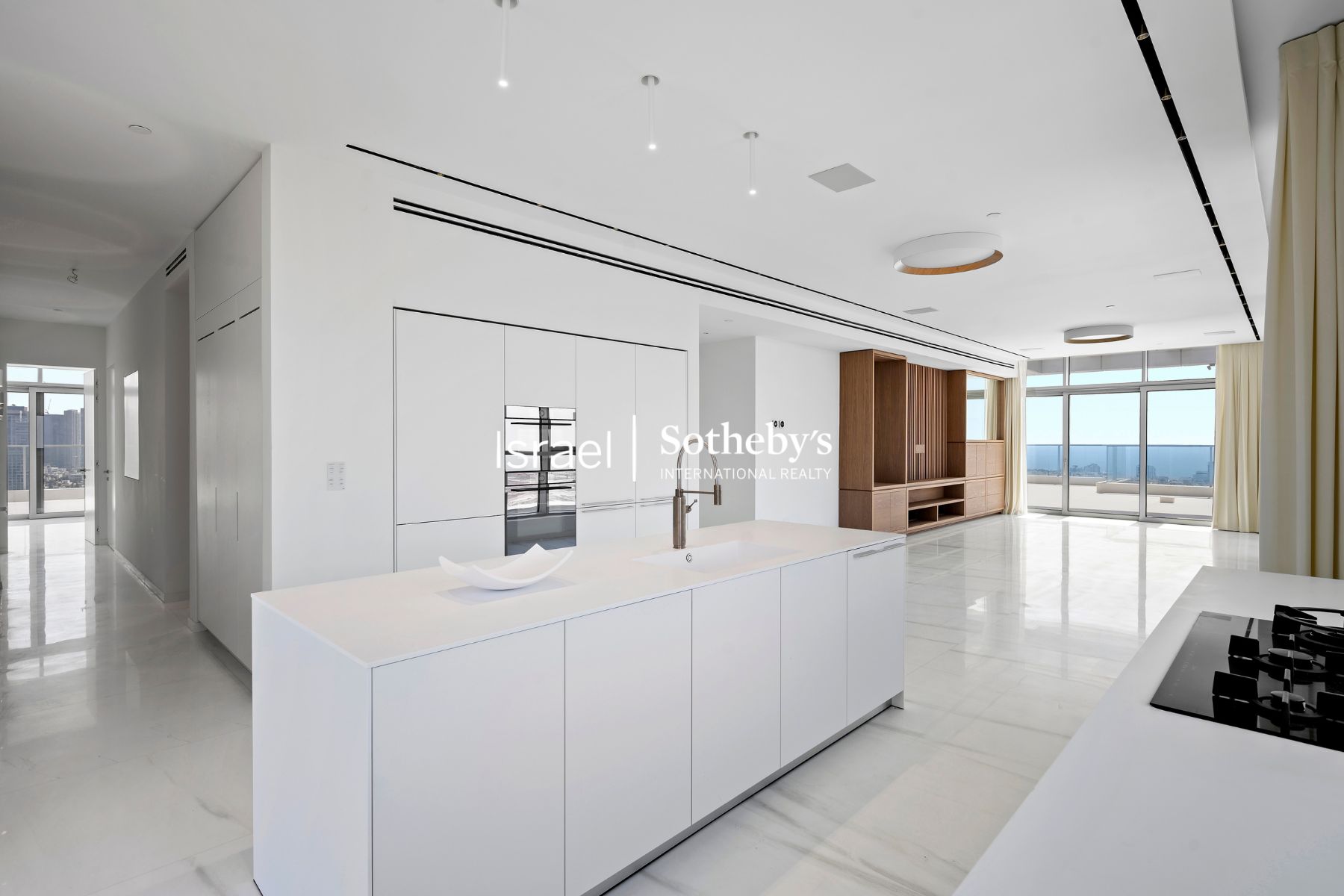 This luxurious penthouse with a breathtaking sea view is situated in the prestigious Havat Gordon residential complex in Tel Aviv. Its spacious layout and stunning ocean vistas make it a highly desirable living space in the sought-after neighborhood of Kochav Ha-Hatzafon. With no neighbors on the floor, the apartment offers complete privacy. The meticulous architectural design by Yael Gal ensures that the space is flooded with natural light, creating a tranquil and welcoming ambiance. The addition of a swimming pool on the main terrace, overlooking the sea and the city of Tel Aviv, truly sets this property apart.
