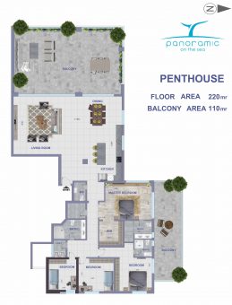 We offer a brand-new penthouse for sale with panoramic sea views, features a spacious full of light living room with an open plan kitchen, 110m2 terrace where you can spend quality time with family and friends while gazing at a beautiful romantic sunset over the sea.