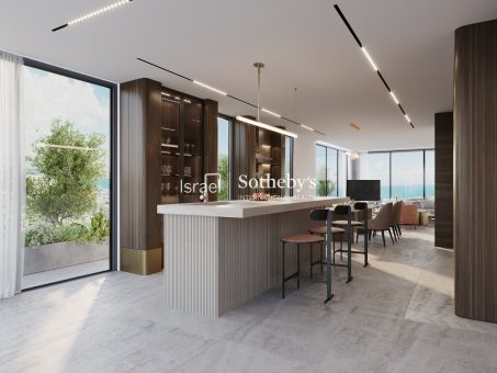 An ultra-luxurious penthouse we’d like to introduce you boasts a living room with a designer kitchen and a dining area, four in-suite bedrooms and 130 m2 terraces with panoramic views of the Mediterranean Sea.